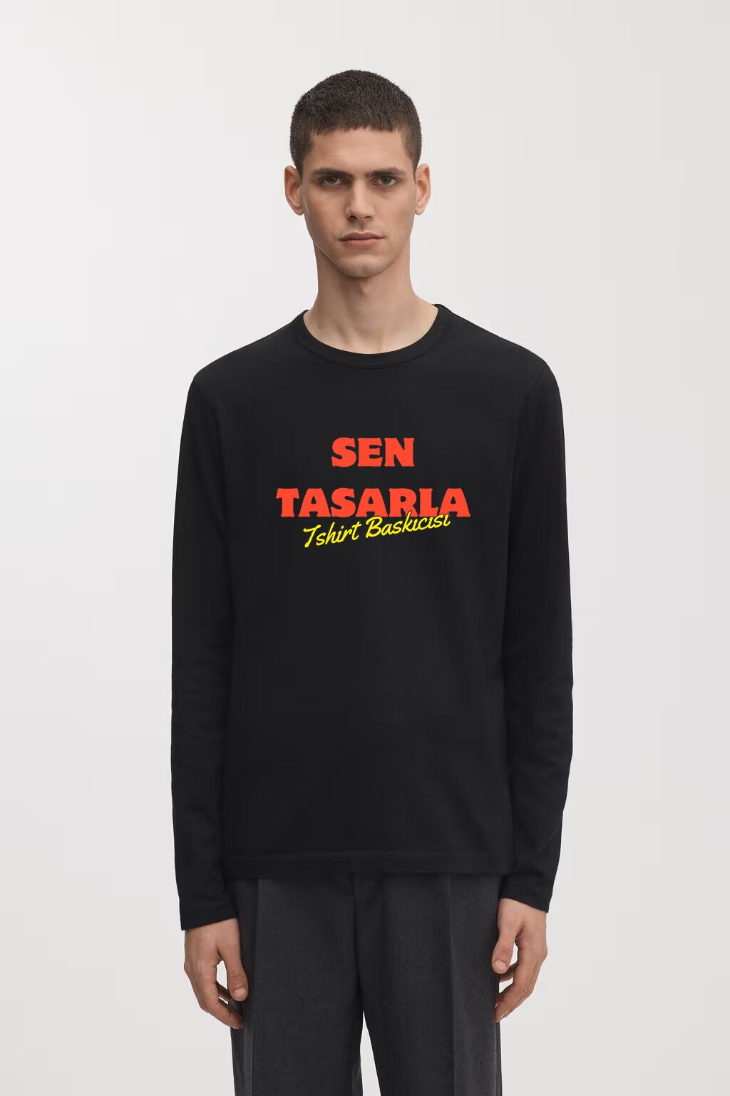 Premium Kalite Uzun Kollu Tişört Baskı (Siyah)